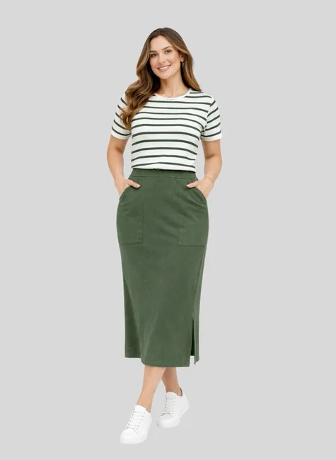 O conjunto feminino em viscolycra premium com saia midi e bolsos funcionais é a escolha perfeita para quem busca conforto, praticidade e elegância em um único look. Sua modelagem moderna combina blusa soltinha listrada com saia midi ajustada, criando um visual equilibrado e sofisticado para diversas ocasiões.