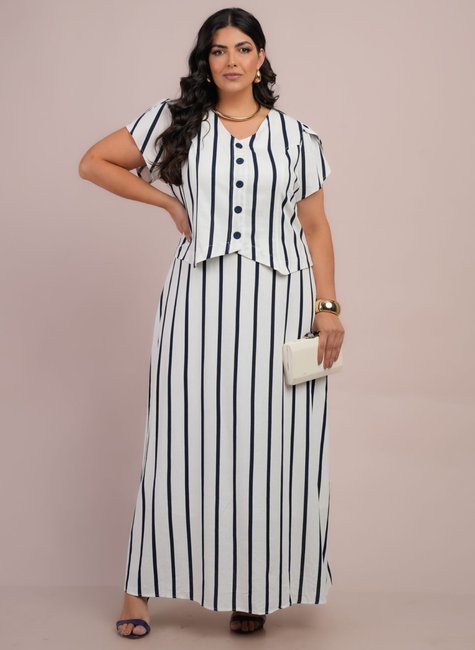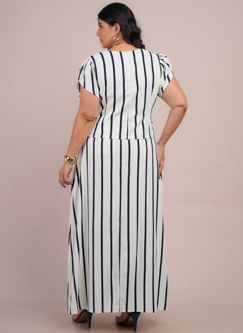 Perfeito para cultos, eventos sociais, compromissos diurnos ou ocasiões especiais, o vestido longo listrado se adapta facilmente a diferentes momentos, mantendo sempre a elegância e o conforto.