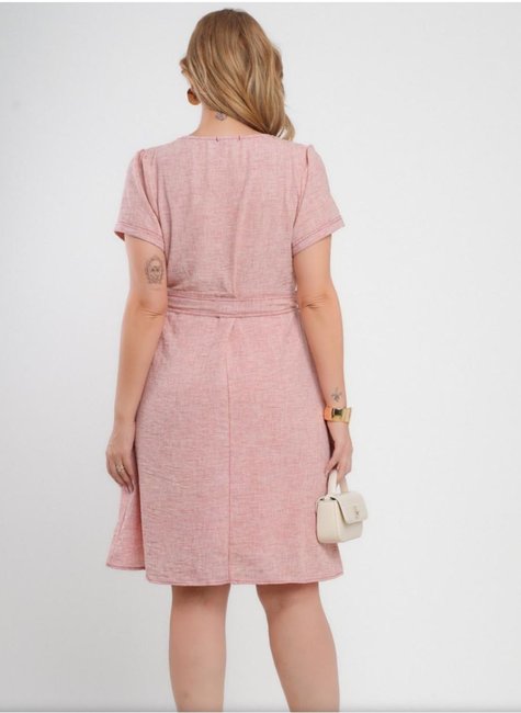 - Cintura com cinto do mesmo tecido que valoriza a silhueta;