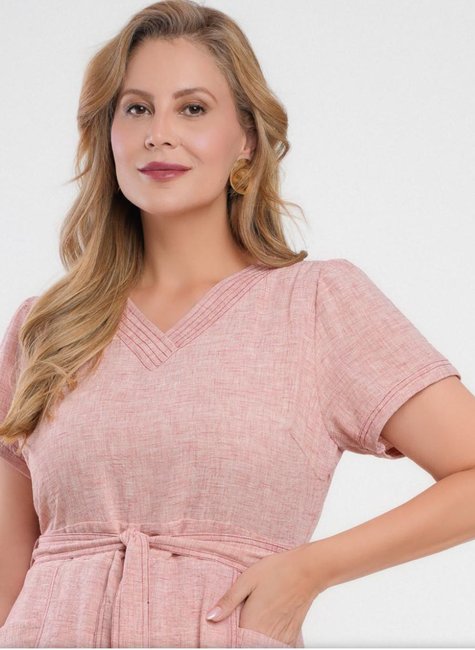 O Vestido Midi Gola V Dona Charme é a escolha ideal para quem busca moda evangélica feminina elegante, com design atemporal e detalhes funcionais. Com bolsos práticos, cintura marcada e comprimento midi, ele une sofisticação e conforto em uma peça versátil.