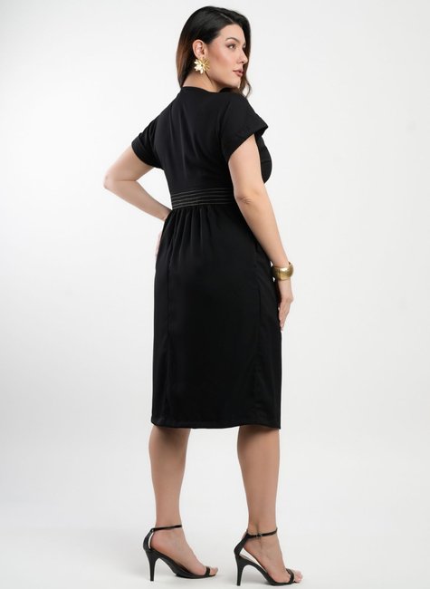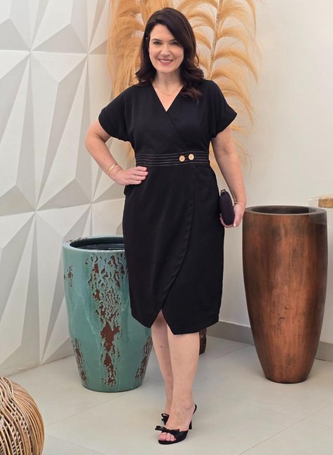 Combine o vestido midi preto Dona Charme com scarpins, sandálias de salto ou blazer para um look elegante e atemporal. Perfeito para reuniões, cultos, jantares ou eventos formais. Aposte em acessórios dourados e uma bolsa estruturada para um toque final de sofisticação.
