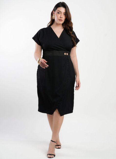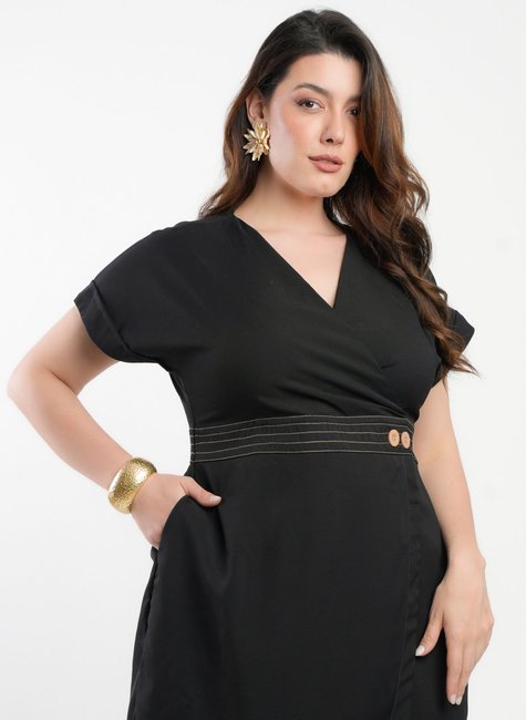 - Design transpassado com botões na cintura que valoriza a feminilidade.